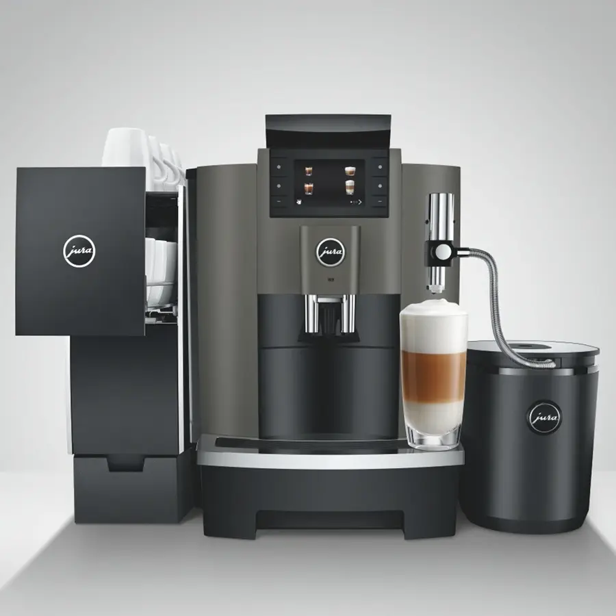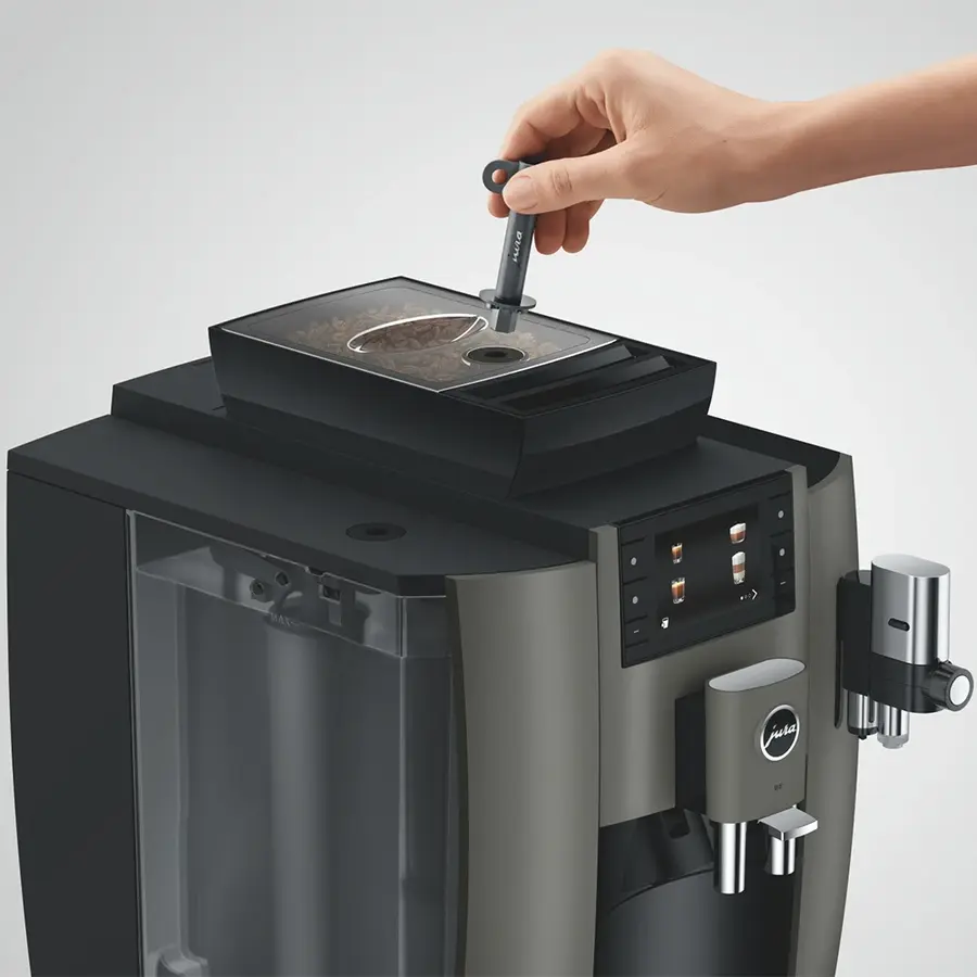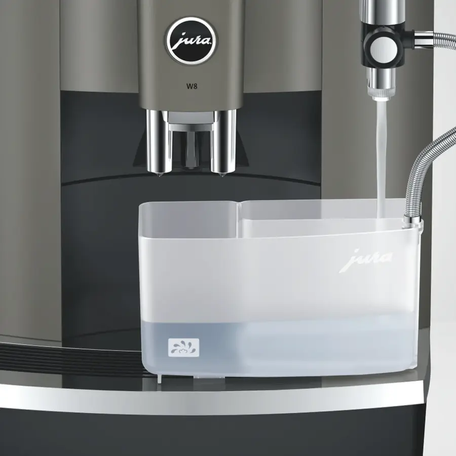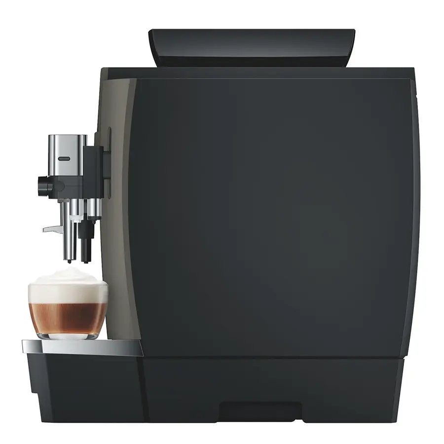 - Cappuccino spout, height adjustable on a continuous scale for cappuccino, latte macchiato and flat white topped with fine foam at the touch of a button.