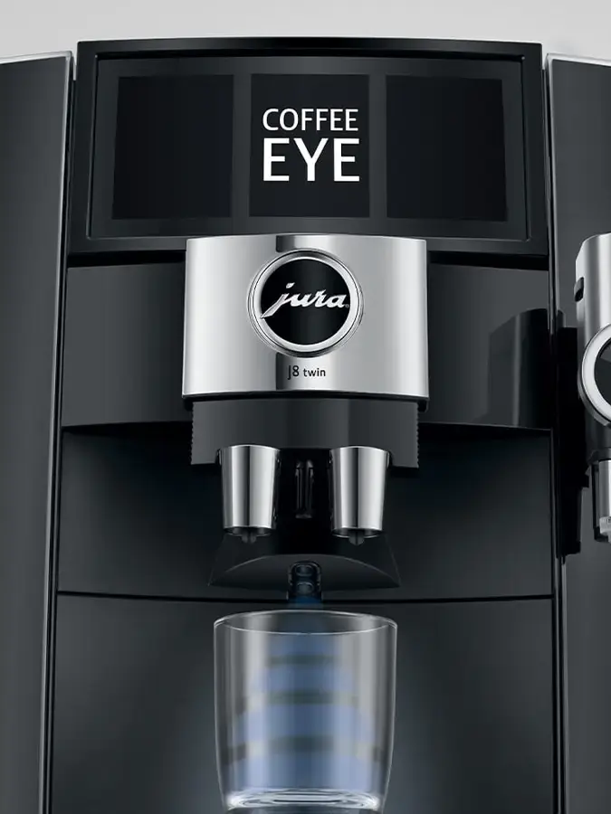 The Panorama Coffee Panel on the J8 twin is your intuitive gateway to creating coffee specialities. Precise and logical, this operating concept is self-explanatory. The sliders in Easy Mode also ensure maximum flexibility when adapting the specialities to the chosen cups. Assistance systems make operation even easier, while aroma control ensures the correct grind consistency. The Coffee Eye intelligent cup sensor ensures the cups are always placed under the correct spout for the speciality chosen. And, of course, cleaning and maintenance are also possible at just the touch of a button.