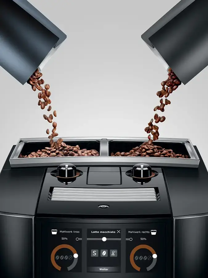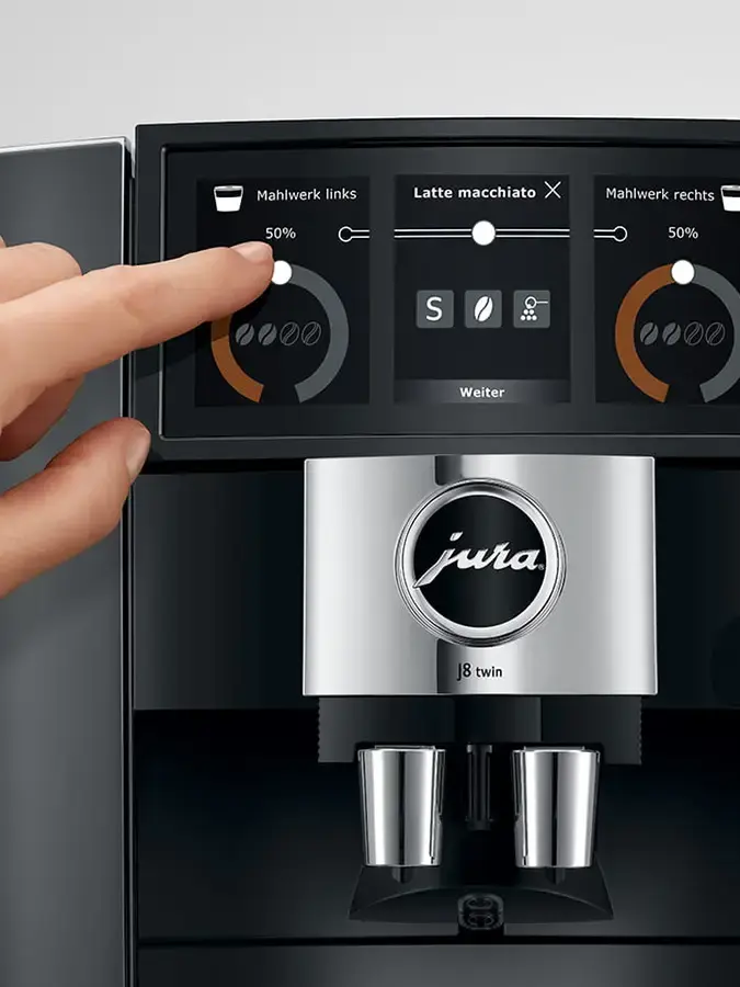 A regular or decaf speciality coffee? Dark espresso roast or mild lungo coffee blend? The J8 twin from JURA comes equipped with two high-performance conical grinders. Combining two coffee machines in one, this machine offers the best of both worlds.